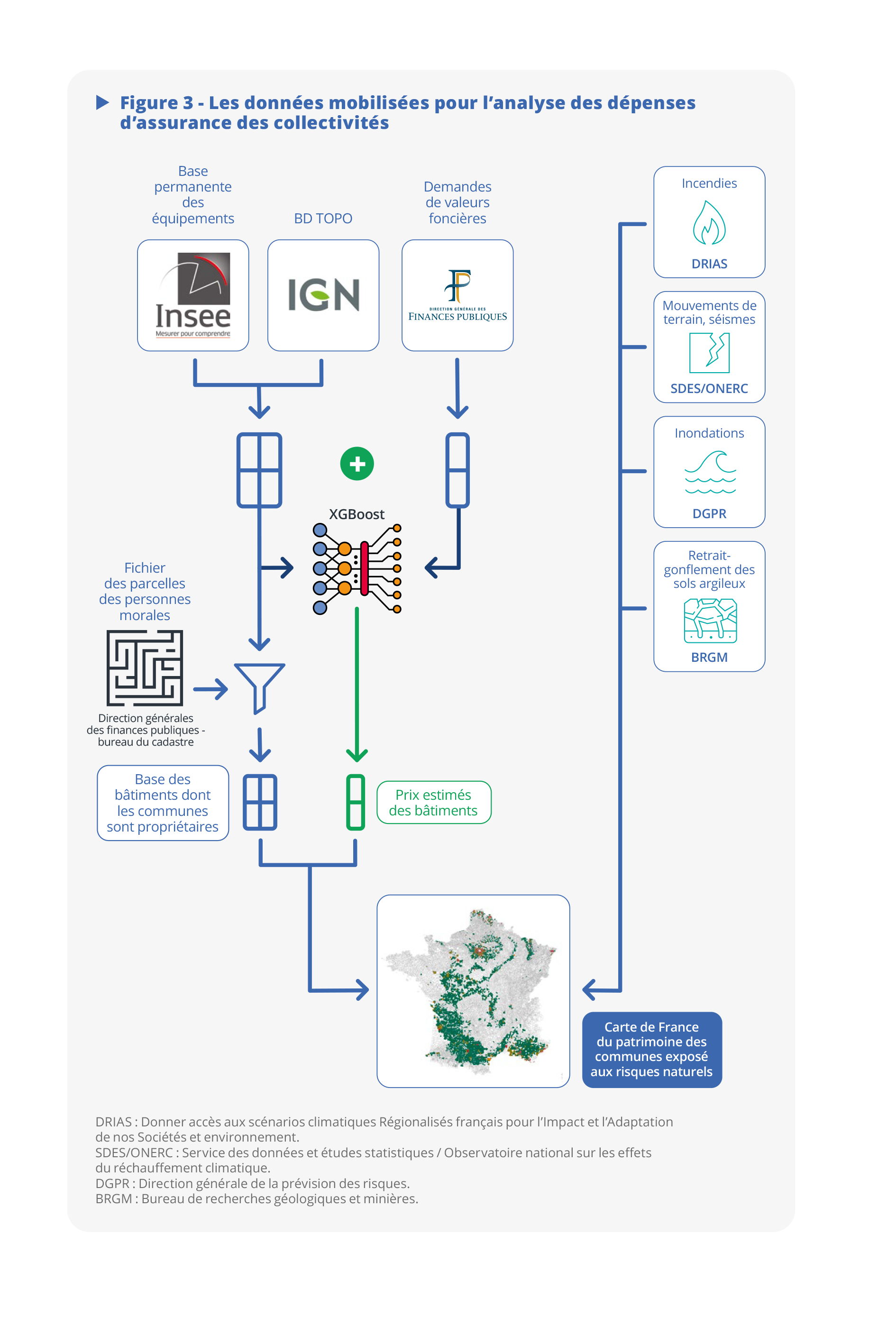 Afin d’illustrer de façon plus concrète le type de travaux conduits, nous présentons le soutien apporté par l’équipe du pôle science des données à une mission portant sur l’assurabilité des biens des collectivités locales, mission à laquelle l’IGF et l’inspection générale de l’administration ont apporté une assistance technique.