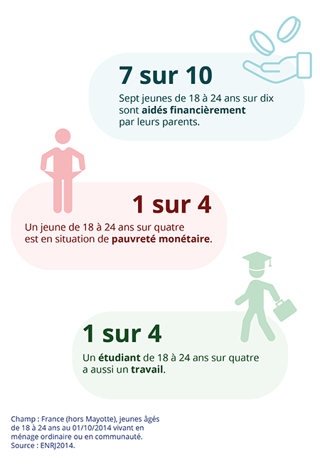 Castell L., Portela M. et Rivalin R., 2016, « Les principales ressources des 18-24 ans - Premiers résultats de l’Enquête nationale sur les ressources des jeunes », Insee Premières, INSEE, no 1603, juin.