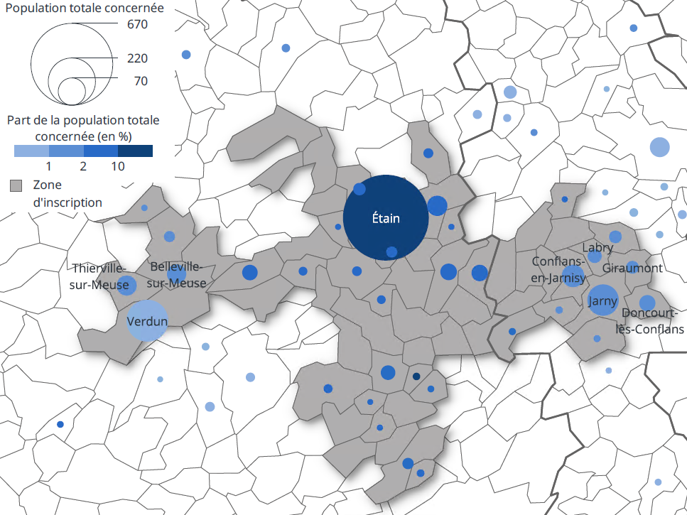 Dans les communes d’Eix, Warcq, Rouvres-en-Woëvre où résident moins de 600 habitants, cette population représente de 5 à 8 % de la population communale (figure 1).