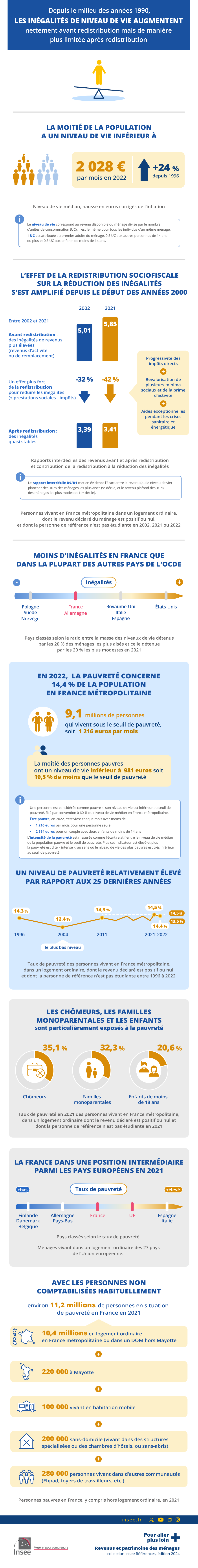 Pen L., Rousset A., « Niveau de vie et pauvreté en 2022 – Des niveaux de vie et un taux de pauvreté stables malgré une inflation élevée », Insee Première n° 2004, juillet 2024.