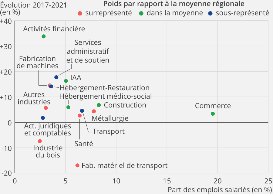 | ₃ | Part des emplois salariés | Évolution 2021/2017 | Poids par rapport à la moyenne régionale | |