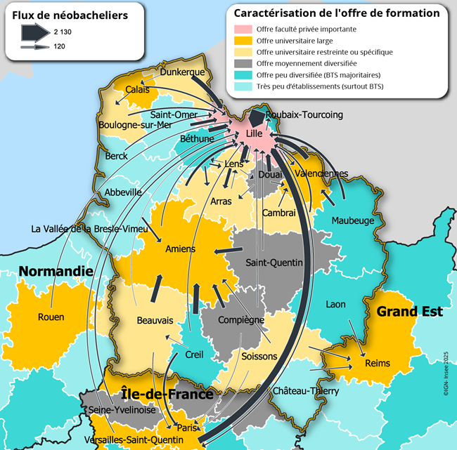 (2) « Les mobilités à l’entrée dans l’enseignement supérieur à Amiens – Un pôle attractif pour les bacheliers de l’académie », Insee Analyses Hauts-de-France no 199, octobre 2025.