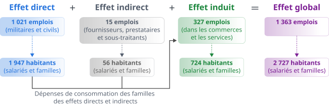 L’emploi direct correspond au nombre de militaires et de civils qui travaillent sur la base.