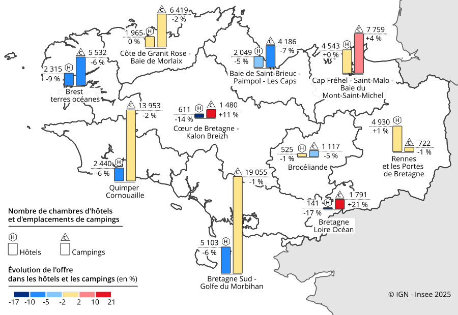 (3) Gallic G., Mevel A., « Saison d’été en Bretagne : en 2025, la fréquentation touristique repart à la hausse », Insee Flash no 116, décembre 2025.