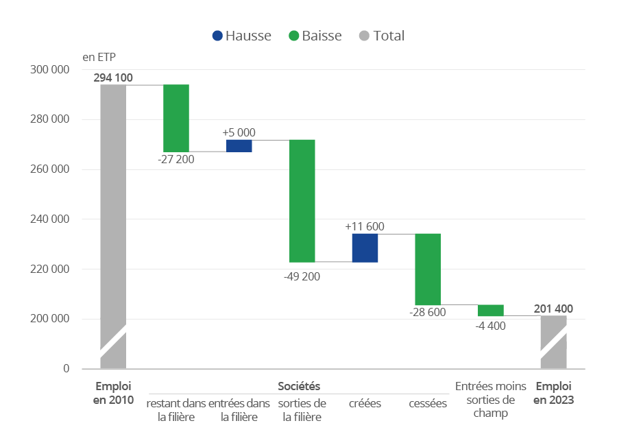Une chute de l’emploi spécifique à la filière dans tous les secteurs