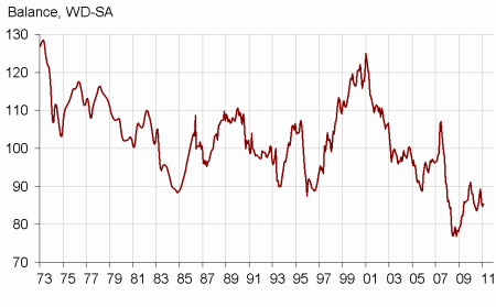 - (2) This indicator is normalised in such a way that its average equals 100 and standard error equals 10 over the estimation period (1987-2010).