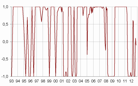 - Note: close to 1 (respectively -1), this indicator indicates a favourable short-term economic situation (respectively unfavourable).