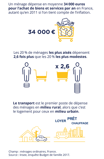 Elvire Demoly, Camille Schweitzer (division Conditions de vie des ménages, Insee), « Les ménages les plus modestes dépensent davantage pour leur logement et les plus aisés pour les transports », Insee Focus, no 203, septembre 2020.