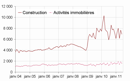 graphiqueGraph3 – Créations d’entreprises dans la construction et l'immobilier - Données CVS-CJO (+brutes) *