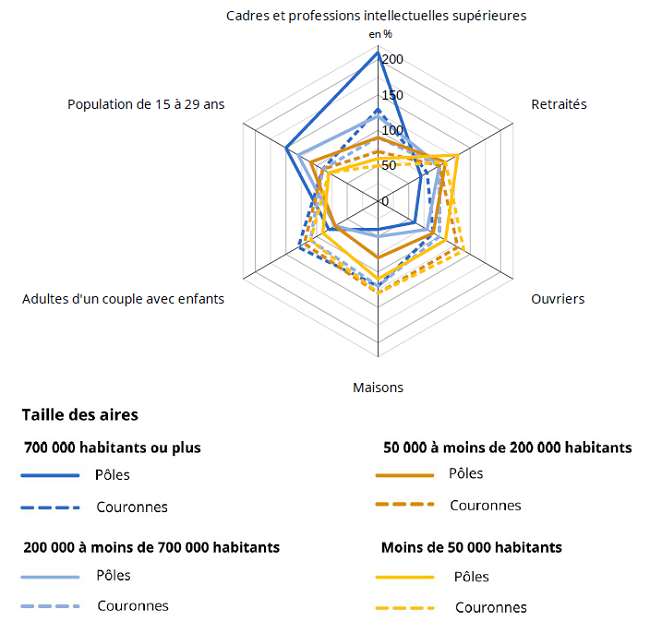 Aires d’attraction des villes - Les jeunes et les cadres dans les pôles, les familles