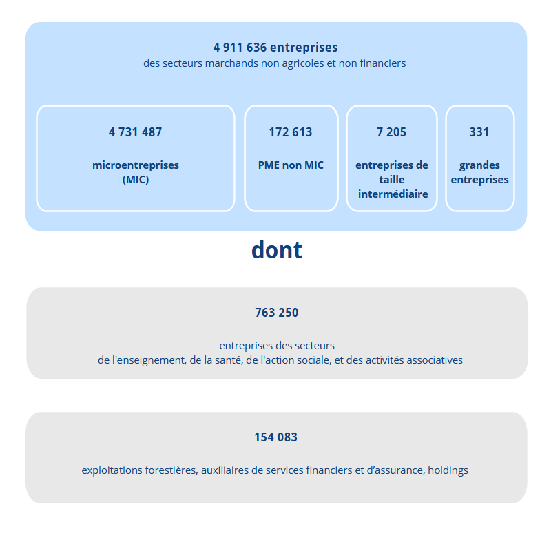- Lecture : en 2022, 4 911 636 d'entreprises composent les secteurs marchands non agricoles et non financiers.