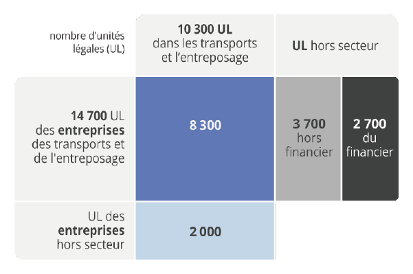 - Lecture : 10 300 UL des transports et de l’entreposage appartiennent à un groupe, dont 8 300 sont filiales d’une entreprise des transports et de l’entreposage.