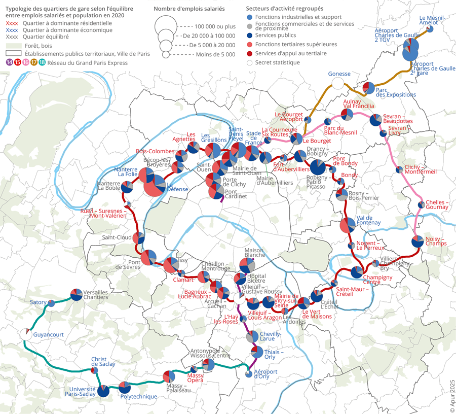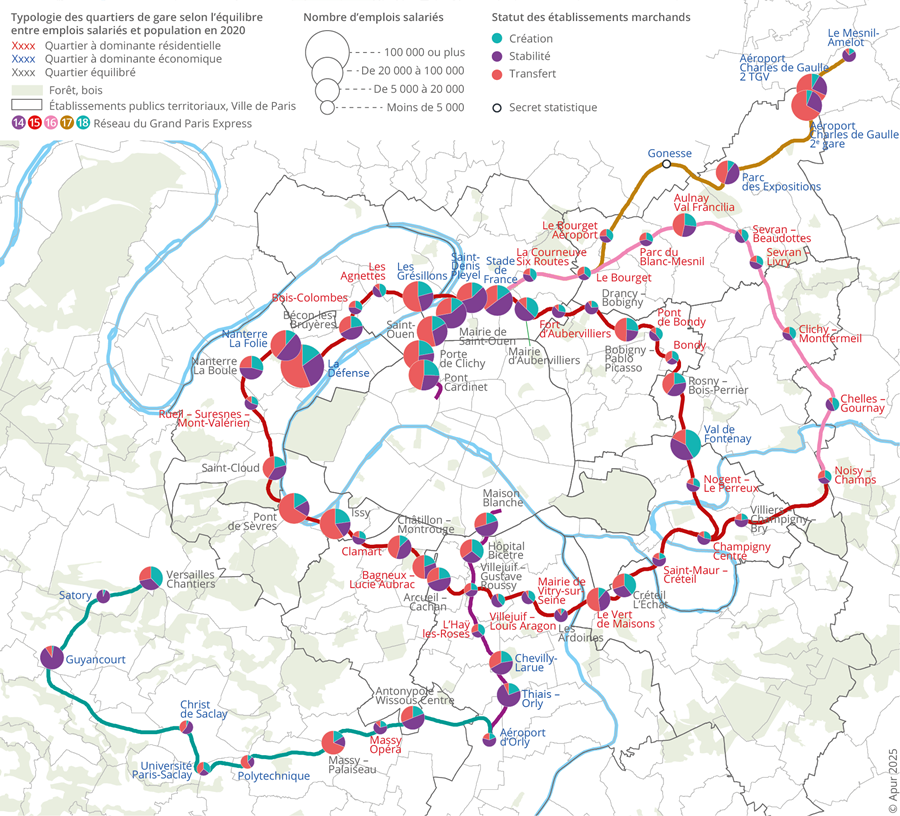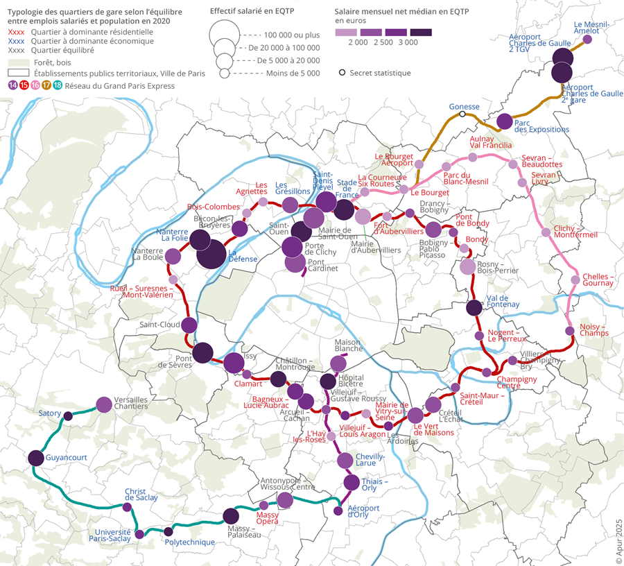 (2) Acs M., Jankel S., Roger S., Veal D., Wolf M., « Quel équilibre entre emploi et population dans les quartiers de gare du Grand Paris Express ? », Insee Analyses Île-de-France no 193, décembre 2024.