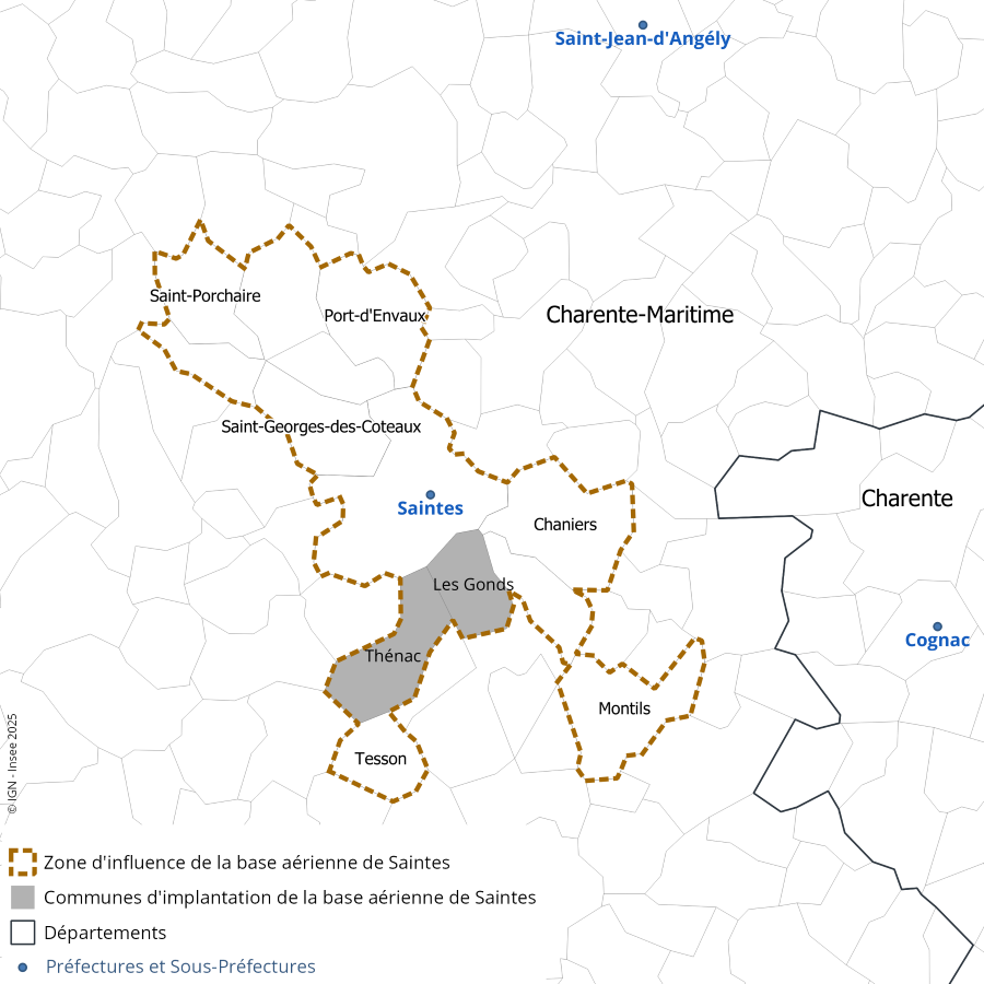 (2) Brunet L., Ravier H. (Insee), Prigent J.L. (Ministère des Armées), « La base aérienne de Rochefort, un fort ancrage dans l'économie locale », Insee Analyses Nouvelle-Aquitaine no 166, octobre 2025.