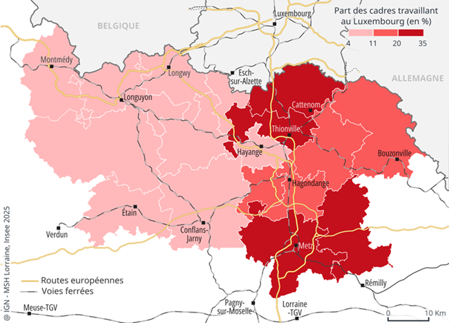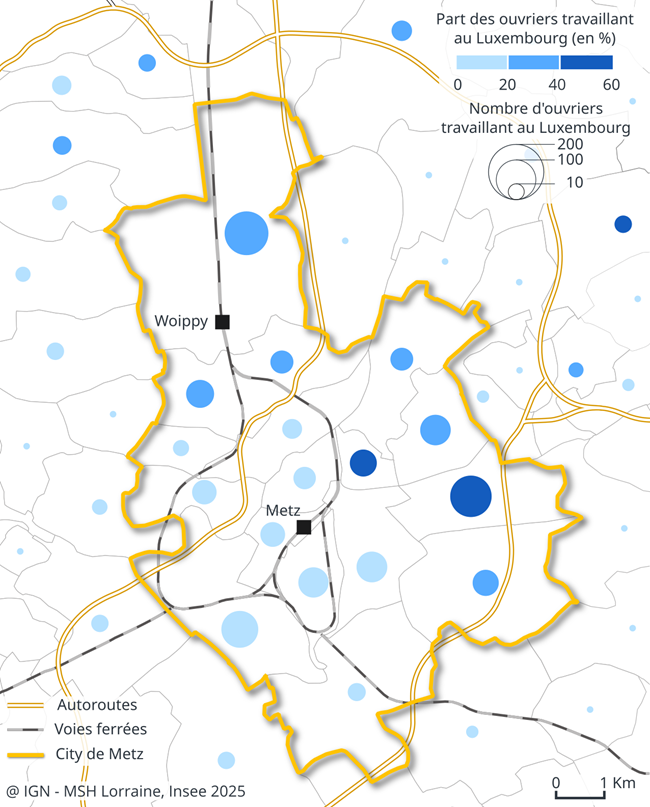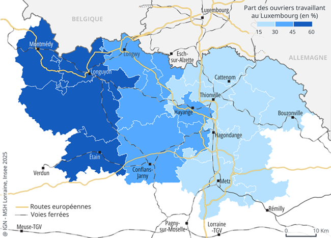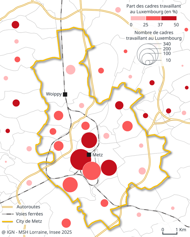 Les travailleurs frontaliers les plus favorisés habitent à proximité de la frontière, des axes de transport ou du centre de Metz