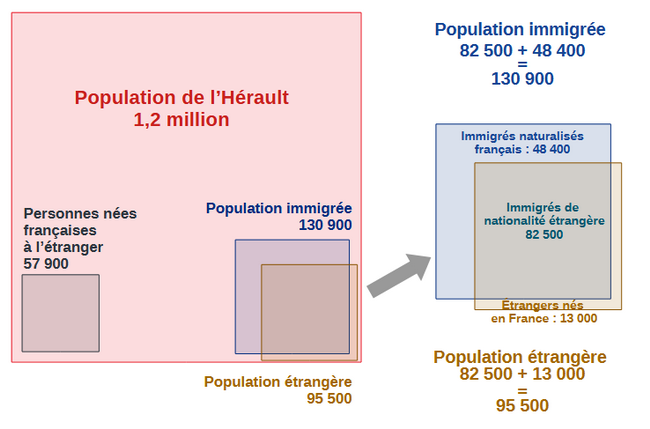 - Lecture : En 2022, 130 900 immigrés (étrangers nés à l’étranger) vivent dans l’Hérault. Parmi eux, 48 400 ont acquis la nationalité française.