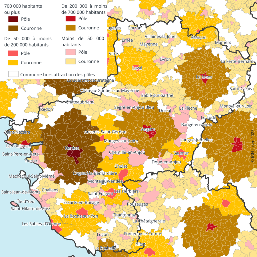 (5) Bauer P., Pétillon X., « Les aires d’attraction des villes s’étendent peu mais se densifient », Insee Flash Pays de la Loire no 133, décembre 2022.