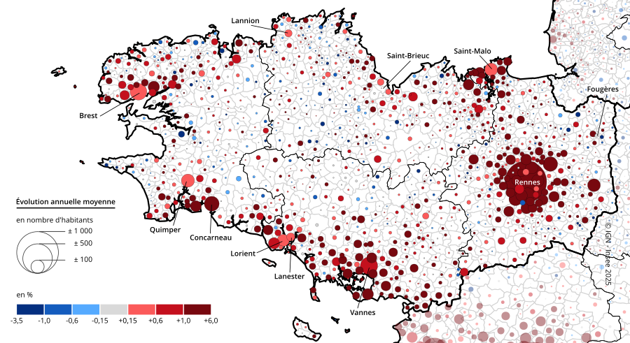- Concarneau, Rennes et Vannes : les trois communes bretonnes d’au moins 20 000 habitants avec une croissance supérieure à la moyenne régionale